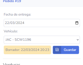 Aquí podrás cargar la Fecha de entrega, el Vehículo (si tienes permiso para ello) y el Número de Orden de Compra (si el cliente así lo requiere)