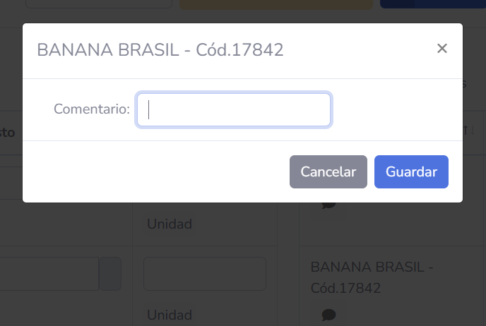 En la celde del nombre del artículo, además de identificar a qué artículos corresponde esa fila, se podrá hacer un comentario adicional, o bien ver uno existente.