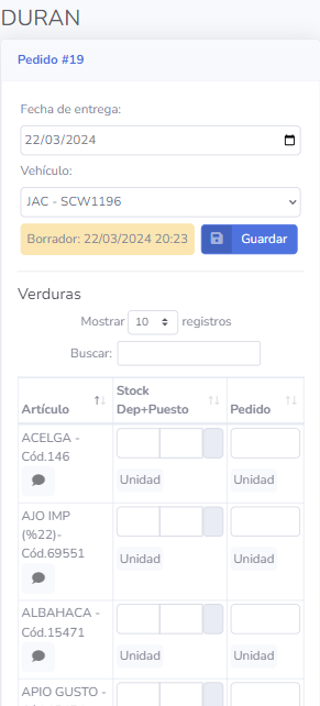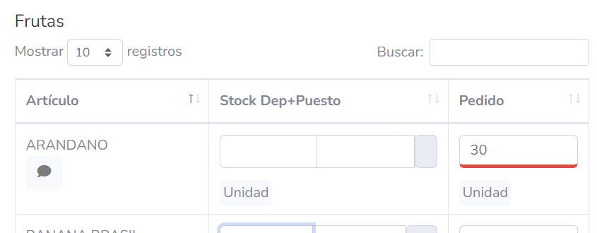 Hay artículos que se piden por unidad o por kilo, pero si, por ejemplo, dice «Caja», «Cajón» debes tener en cuenta esto cuando pones la cantidad a pedir.